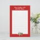 Lined Christmas holiday writing paper with text at the top and a tropical starfish design. Traditional red and green colours with centre block of white with lines. White text at the top can hold the family name and year, or other text. A white sea star with green holly decorates the bottom. Reverse is solid dark green. Write that annual letter to family and friends and include in one of our personalised greeting cards.