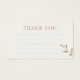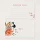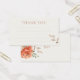 These lovely wedding thank you card features text in a rich ochre colour against a chic ivory background. The design includes a lined area for brides who prefer to hand write their cards. The template also allows for the lined area to be replaced with text, if you prefer a printed text version. The colourful floral illustration at the back, excudes a joyful tone and a youthful elegance. Couple initials side by side at the back.