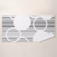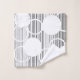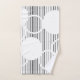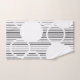 This towel set has a mid-century modern design of black vertical lines with white circles on top.