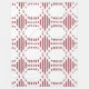 This large fleece blanket has a mid-century modern design of cranberry vertical lines with hexagons strung horizontally on a field of white.
