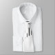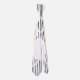 This tie has a mid-century modern design of black vertical lines with white circles on top.