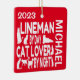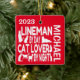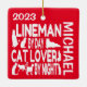 This is a unique ornament featuring the quote "Lineman by Day Cat Lover by Night" is perfect for any lineman that loves cats.