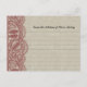 These fun recipe cards feature images of linen and marsala (sort of a dark rose mauve) lace (ALL ELEMENTS ARE PRINTED EFFECTS--THERE IS NO ACTUAL LINEN, ETC). Personalise with a name or any text you choose. Great for a bride, newlywed, or anyone whose recipe file could use some sprucing up. NOTE THAT the name is shown in black, but you can change that to any colour text. Great for cooking parties or bridal showers.