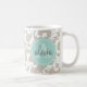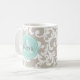 Linen and Mint Monogrammed Damask Print Coffee Mug