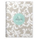 Linen and Mint Monogrammed Damask Print Notebook