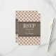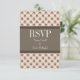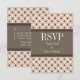 Trendy and chic Fancy Lattice Wedding Response Card featuring a stylish circle and diamond studded pattern over a vibrant peach background with a broad two-toned brown border. This elegant RSVP card is perfect for a modern wedding. Easy to customise, simply add your wedding details in the text fields provided. Click "Customise It" to find more personalisation options.