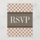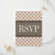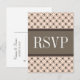 Trendy and chic Fancy Lattice Wedding RSVP Postcard featuring a stylish circle and diamond studded pattern over a vibrant peach background with a broad two-toned brown border. This elegant RSVP card is perfect for a modern wedding. Easy to customise, simply add your wedding details in the text fields provided. Click "Customise It" to find more personalisation options.