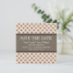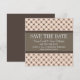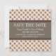 Trendy and chic Fancy Lattice Save the Date Announcements featuring a stylish circle and diamond studded pattern over a vibrant peach background with a broad two-toned brown border. This elegant save the date invitation is perfect for announcing your modern wedding. Easy to customise, simply add your wedding details in the text fields provided. Click "Customise It" to find more personalisation options.
