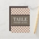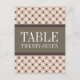 Trendy and chic Fancy Lattice Table Number Postcard featuring a stylish circle and diamond studded pattern over a vibrant peach background with a broad two-toned brown border. This elegant table card is perfect for a modern wedding. Easy to customise, simply add the appropriate table number(s) in the text field provided. Click "Customise It" to find more personalisation options.