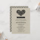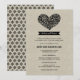 This natural and understated rehearsal dinner invitation features a bold black floral heart on a soft linen-textured background. A dark banner monogram of the couple's first names personalizes the design, while a playful rhyming couplet and dual-location layout keep things functional and charming. All names, dates, and event details are fully editable. A wonderful choice for a rustic, boho, or organic-styled wedding rehearsal dinner.