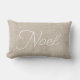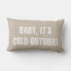 This understated, elegant lumbar throw pillow features a linen-look print in neutral tones with NOEL in a simple script font pinted in white. The reverse features a slighty different look with a modern grunge font that reads BABY IT'S COLD OUTSIDE! printed in white. Two different contemporary looks.