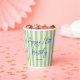 Linen Look Striped Celebration Birthday 18th Green Paper Cups