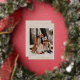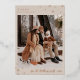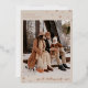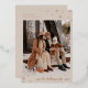 Linen and rose gold Happy Holidays card personalised with a photo of your family, your family name in rose gold foil. Rose gold foil photo Christmas card with your photo and pretty little rose gold foil stars.
