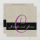 Beige Linen Rustic Wedding Invitation with Purple Monogram design by Elke Clarke ©2009. Customise with your monogram names and wedding colours. Add all your wedding information on the back of the card using Zazzle's easy to use menu prompts. Linen background is a printed photo effect.