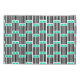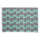 This pillowcase has a mid-century modern design made of five black lines and two turquoise rectangles repeated across the design.