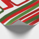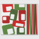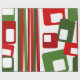 This wrapping paper has a mid-century modern Christmas design of lines and rectangles in retro shades of red and green.
