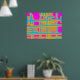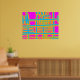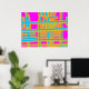 "Lines of Communication" a colourful abstract design in magenta, blue and shades of amber and orange.