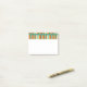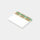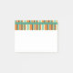 This Post-It notepad has a mid-century modern design of horizontal lines made from vertical stripes in seafoam, off-white, two oranges, and brown.