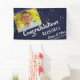 Welcome your graduation party guests and honour the graduate with this editable navy blue and white banner sign featuring the graduate's photo. The design has simple, clean white lines against an editable navy blue background and muted stars with a brush script title "Congratulations NAME" and graduation year in editable white. You can change the background and text colours to coordinate with your photo, school colours or party theme colours.