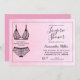 Bridal Lingerie Shower invitations for the Bride to Be. Lingerie Shower Invitation has black lace lingerie on a textured pink background. Add your party details by clicking on personalise and using the easy template.