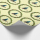 A lineolated parakeet is shown inside a Christmas wreath on this lovely Christmas wrapping paper