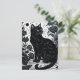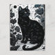 Linocut of a Black Cat Among Flowers Postcard