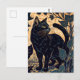 Linocut of a Black Cat Among Plants with Yellow Ba Postcard