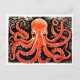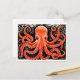 Linocut of a Red Octopus on Black and White bg Postcard