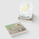 The coasters are gorgeous, a quality feel and heavy weight. They look like a precious archeological find. A rustic stone juxtaposed with a modern floral black and white print. I like the way the print goes slightly imperfect on the cut stone edges giving them a kind-of natural beauty.