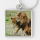 Large square premium metal keychain with an image of a lioness and her lion in a display of affection. Optional pun. See matching square double-sided acrylic keychain, square button and square charm. See the entire Nature & Wildlife Keychain collection in the ACCESSORIES section.