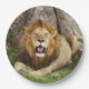 Set of eight 9” paper plates with an image of a handsome lion at the Maasai Mara National Reserve.