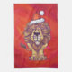 Lion Christmas On Red Tea Towel