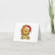 The Lion at Christmas with fairy lights. Funny animals with gifts and snow for the holidays. A sweet Christmas greeting. Lions are cute animals and perfect for Christmas.