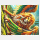 This fleece blanket has a lion creature on it.