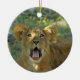 Tiny lion cub giving a big yawn, lying in the green grass. Image taken at Kwara Camp, Okavango Delta, Botswana, May 2014.