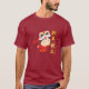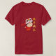 Cute illustration with a child dancing the Lion Dance for Chinese New Year. Design on cardinal colour men's t-shirt with golden Happy New Year in Chinese and in English. Perfect for Chinese New Years. ------------------