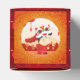 Cute illustration with a child dancing the Lion Dance for Chinese New Year behind a golden frame + golden "Happy New Year" in Chinese and English + your message and your family name to customise on small stylised Chinese lanterns pattern. Design on cube favour box. Available in gable, take-out and tent favour boxes. Matching greeting card, holiday postcard and party supplies.