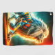 This golf towel has a lion design on it.