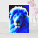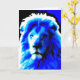 The King of the Jungle. Birthday card with a retro screen print inspired close-up portait of a lion's head in striking colours - blue, black and white. A customisable design for you to personalise with your own text, pictures and ideas. Created using original photographs and digital effects by Jess Perry.