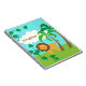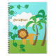 This personalised notebook has a cute children's design featuring a lion, two palm trees, white cloud, vines & leaves on a teal background. Customisable text allows you to add a name.