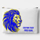 Blue and yellow lion mascot on a white background with customisable text makes this pencil pouch or cosmetic bag one-of-a-kind. On the back, personalise it further with your student's initial.