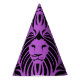 This party hat is shown in Purple with a Lion print all over this party hat.