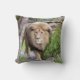 Real photo print of lion in the wild printed on throw pillow.
