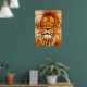 Customisable digital art poster for animal lovers, featuring a fractal style abstract portrait illustration of a beautiful lion. You may personalise this poster with custom text, you can add a border or choose a different poster size.
