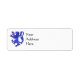 This design by Richard H. Fay features a heraldic lion rampant azure, a blue lion depicted in profile rearing up on its hind legs, ready to stave off all attackers.