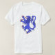 This design by Richard H. Fay features a heraldic lion rampant azure, a blue lion depicted in profile rearing up on its hind legs, ready to stave off all attackers.