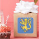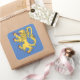 This design by Richard H. Fay features a heraldic lion rampant, a lion depicted in profile rearing up on its hind legs, ready to stave off all attackers.