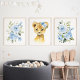 Add the finishing touches to your baby’s nursery or child’s bedroom with these gorgeous art prints! Design features lion, blue watercolor flowers and greenery.