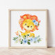 Lion, Safari, Jungle, Blue Flowers, Boy Nursery Poster