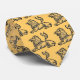 Golden orange tie with vintage lion illustration.